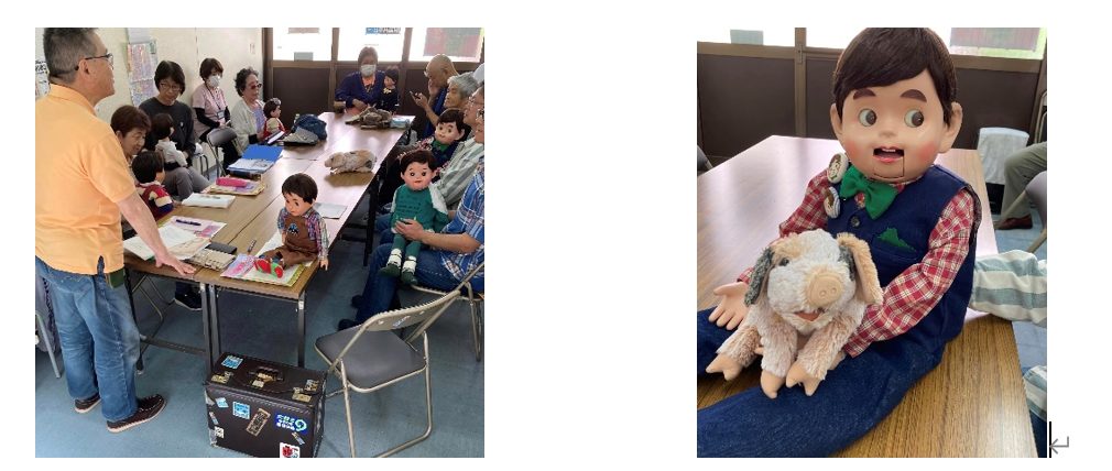 マタイさんの指導風景 人形と豚のパペット